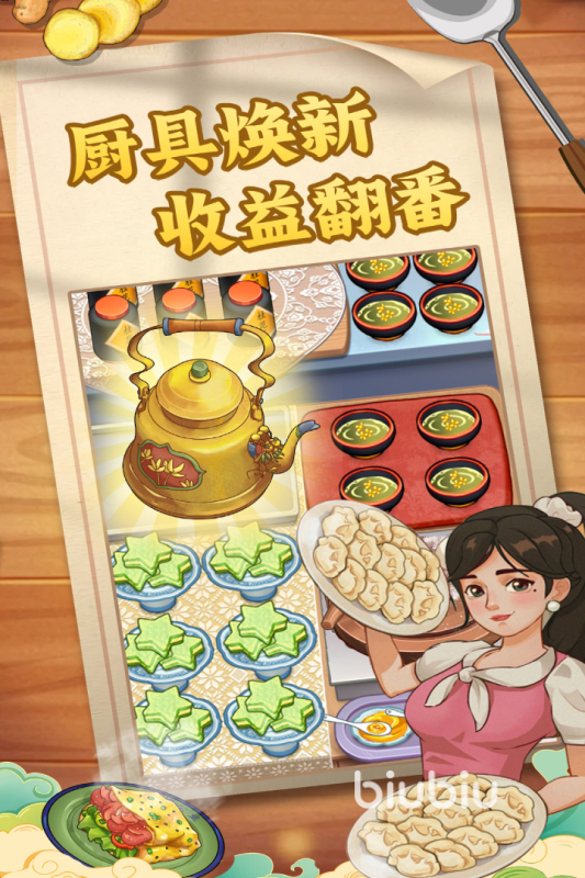 厨房的各种工具设备也能进行升级,升级后可大幅度缩短烹饪时间,提高制作食物的效率;要合理安排顾客订单顺序,注意时间管理,减少客户等待时间;精美的卡通画风,看着赏心悦目。