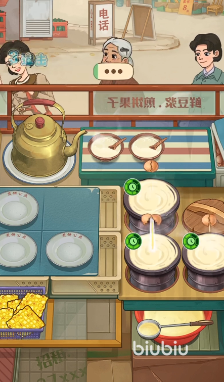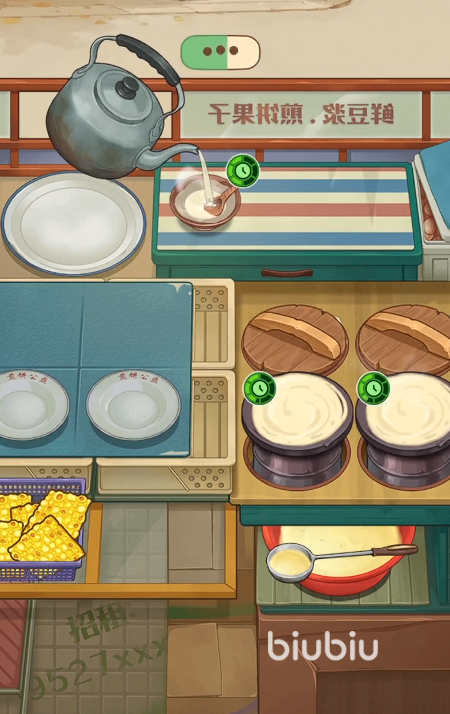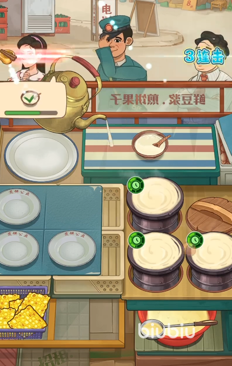 后续由于店铺的名声打响了,所以玩家们是可以开拓更多的业务,比如说提供豆浆这种饮品,这样顾客可以花更多的钱,也可以给玩家们提供更多的利润,来开出更多的店铺,而这个阶段,玩家们就需要加快速度了,需要同时兼顾煎饼果子以及豆浆,这样才能完成每一关的挑战哦。