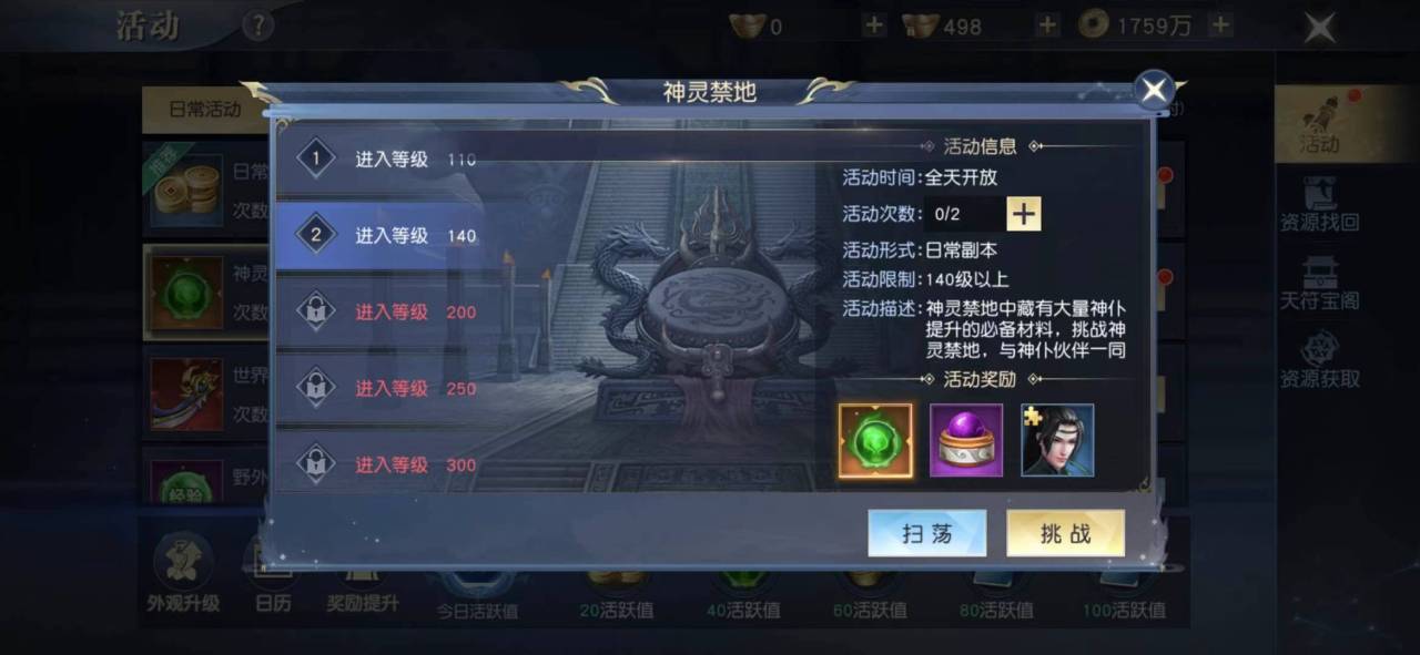 需要注意的是神灵禁地每天只可以刷2次,大家每天做完日常任务后,都可以来关注一下活动页面,不要浪费机会。