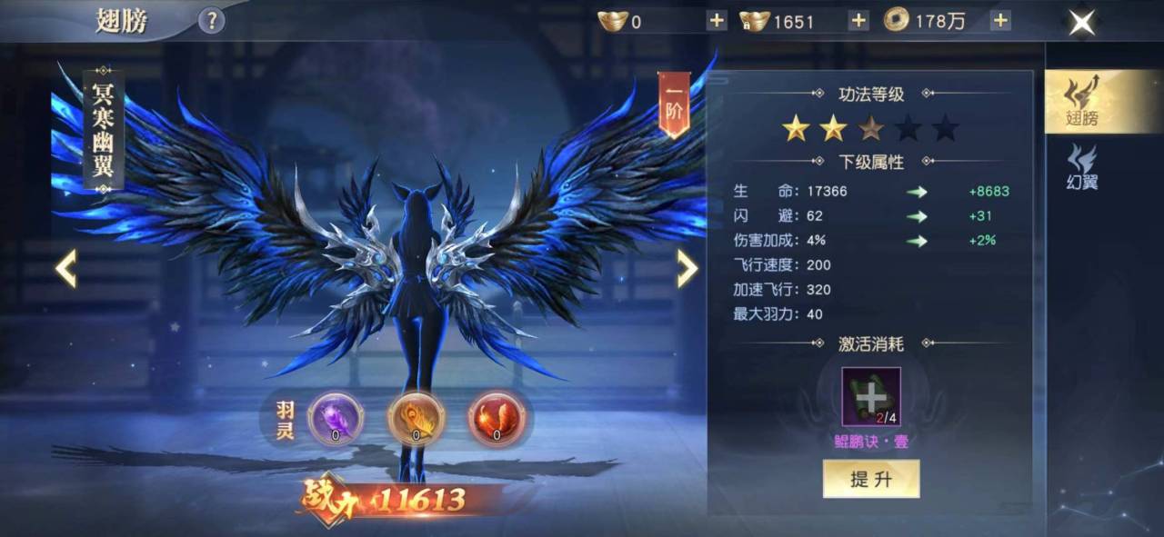 作为一名修仙者翅膀是必不可少的装备,不经有华丽的外表更可以飞行,给移动地图带来便利,最主要的可以给玩家增加不少战斗力,不同的翅膀之间还可以进行切换,外观都会有所改变,翅膀作为一件装备,也是需要升阶升级的,升级翅膀同样需要用到很多资源,第一阶段需要鲲鹏决壹作为进阶材料,后期有鲲鹏决贰和叁,都需要通过挑战世界BOSS获得,击败世界BOSS后有一定几率可以获取这些材料。