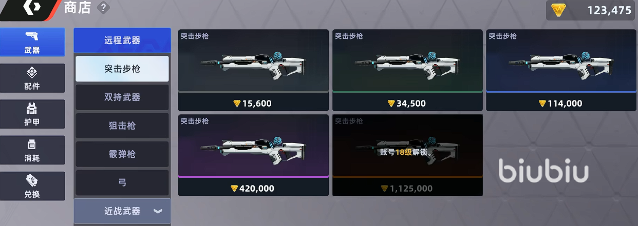 首先在商店购买最高级别的还是武器,武器方面有很多的种类,其中突击步枪是一个比较好上手的武器,基本上新手都是可以购买的,而商店里有很多不同品质的武器,这里直接推荐购买最后面的金色品质,因为这类武器的强度绝对是足够的,而且其他品质的武器完全可以在地图中拾取,没有必要购买。