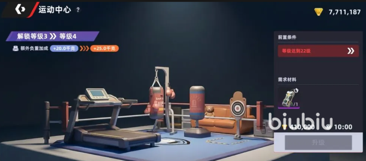 运动中心也是可以升级的,只要获得相应的升级材料和金币就能升阶。初期设施升阶的要求都不高,后续升级的要求就会越来越高,注意升级材料的搜集,相应的没成功升阶带来的负重加成也会越来越高。