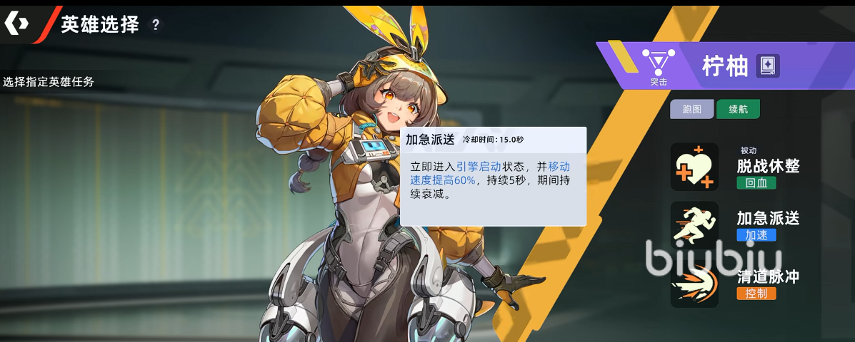这张地图的角色方面选择柠柚,该角色的主要优势在于脱战的时候,可以迅速回血,使得柠柚几乎在全程的跑图过程中血量可以处于健康的状态,而且小技能方面还具有加速的效果,让柠柚其实是可以避免很多的战斗,从而将更多的收益带入战场。