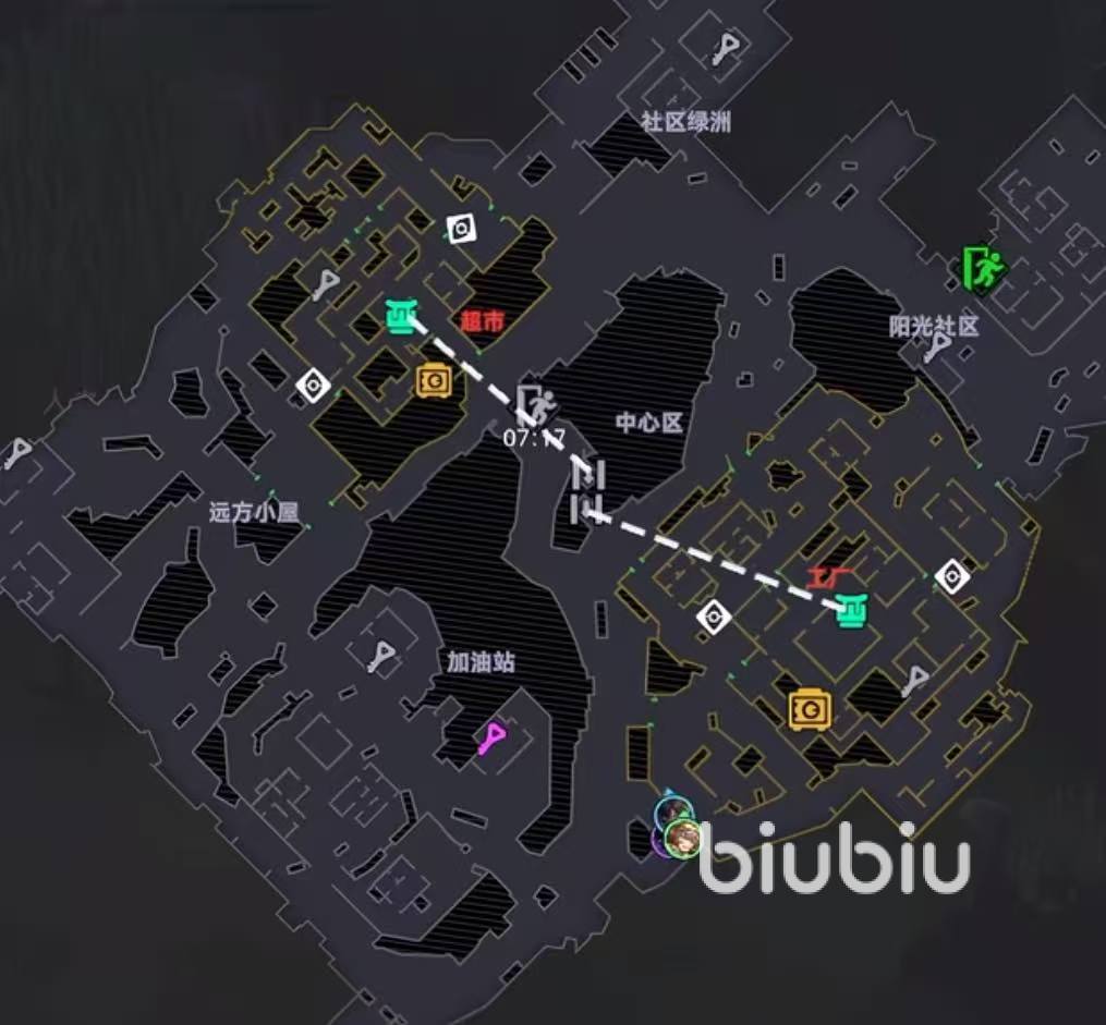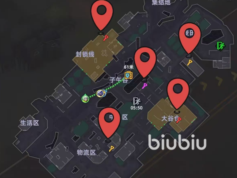 首先是新手图谷仓区地图,该地图难度低性价比高,仅开放普通禁区,作为新手可以在这张地图慢慢熟悉玩法,掌握角色,同时图内有五个密室,所以需要开局前带好钥匙,其位置如上图所示。一局只有12分钟,所以想要收集齐的小伙伴需要抓紧时间。