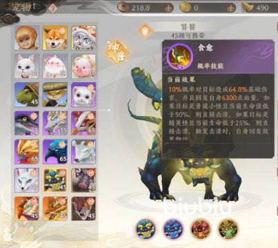 它的攻击上是遇弱则强,有一个天赋,如果对面的敌人在血量比较少的情况下,饕餮有机会可以一击即中,在上面一招将对面的敌人击败,就算是精英怪,对面的血量少于四分之一的时候也可以一击结束战局,这个技能可以说是一个保命技能了。