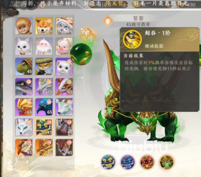 在外形上看其实饕餮也是一个比较像麒麟的神兽,在颜色上也是比较符合大家对于上古神兽的猜想,整体的颜色都是深沉的亲蓝色,头上的角还是比较大的,新手骑士获取饕餮的几率不大,毕竟它也是一个神兽,后期的升级方面是比较好培养的。