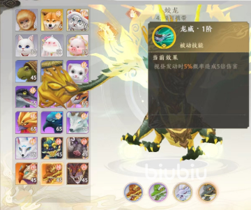 目前大家的获取方式是只能在上面通过元宝商城来抽,获取的几率也是很低的,蛟龙在游戏中也是属于一个比较强势的宠物,可以为坦克职业以及峨眉使用这个职业,因为蛟龙可以帮助玩家补足伤害,它的天赋技能就是一个基础伤害很高的技能,当这个技能发出的时候可以造成对面的眩晕效果。
