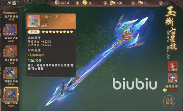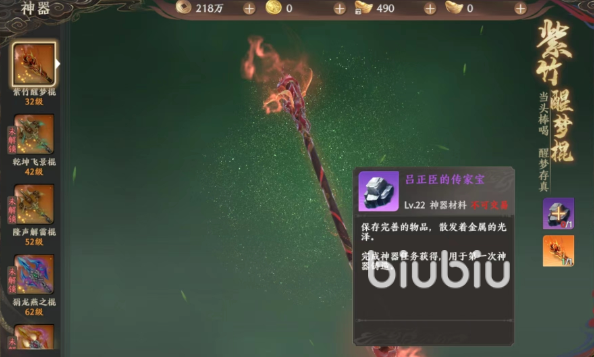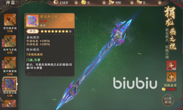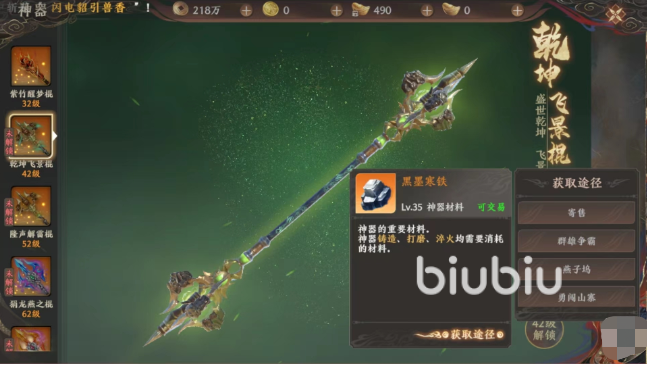 大家只要跟着主线走一般到三十级左右就会解锁这部分玩法了,神器也不止是只有一把,跟随着大家的升级,其实大家在上面可以解锁的神器等级就会越来越高,就比如到了42级的时候,大家就可以解锁第二把神器,第二把神器就是第一把神器的升级版,带来的属性加成更加厉害。