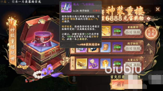 第一天会奖励一个头像框装饰,其次是宝石以及腰带奖励,其中的宝石以及腰带是比较珍贵的,头像框是一个永久头像框,第二天则是一本秘籍以及寒铁以及铭刻符,相比第一天的东西,其实第二天的东西就都是用得上的道具了,特别是这个气功秘籍,得到的玩家可以学习新的招式了。