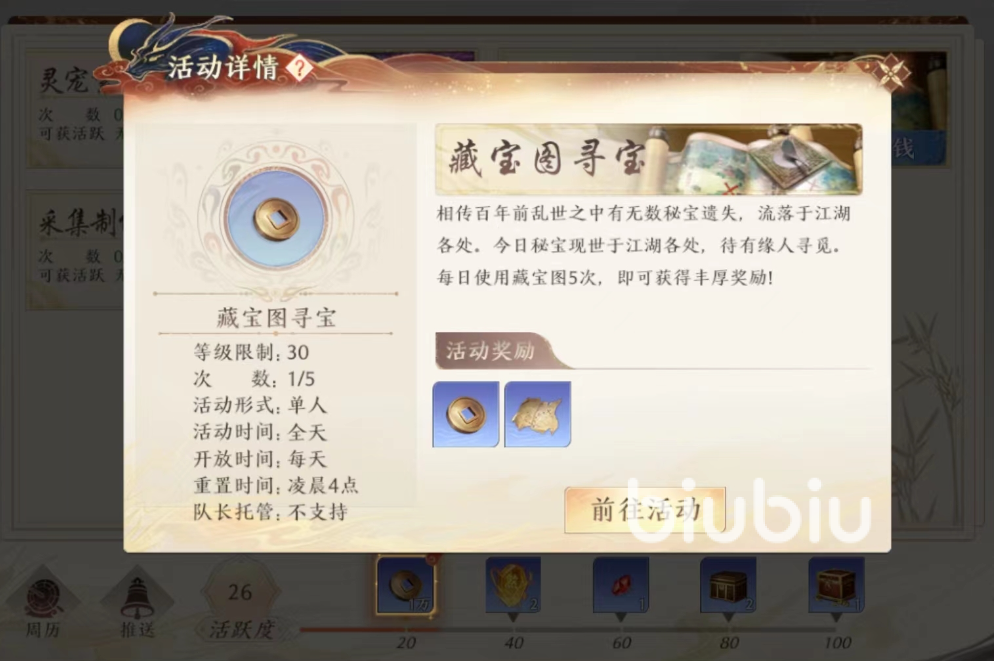 第一个方式就是通过藏宝图,藏宝图是大家在游戏中参与活动获取的一个道具,大家可以通过藏宝图的地点寻宝来获取藏宝图,不过出现其他物品的几率会比较大,技能书也会出现,但是几率不算很大,所以大家是可以看看自己运气的。