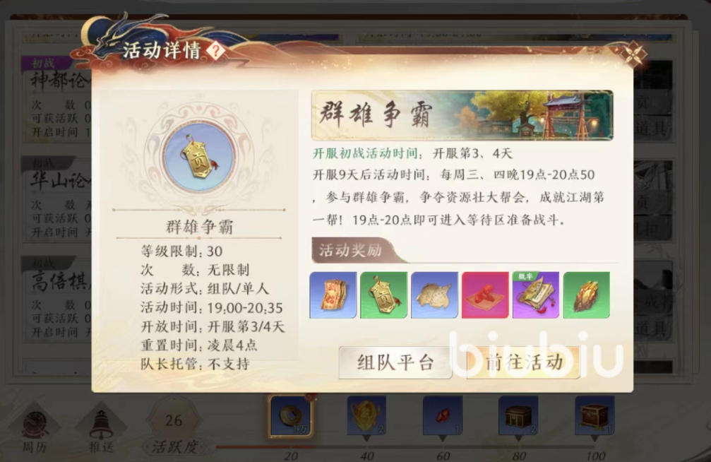 第三种方式就是通过活动,在活动当中有部分副本是奖励材料的,有些是奖励元宝的,只要大家查看副本详情就可以知道奖励是什么,现在类似于神都论剑、群雄争霸还有西夏王陵等等副本可以获取,最后一个方式就是通过限时商城,不过限时商城中的道具数量少,需要大家抢,而且都是需要大家充值才可以获取的。
