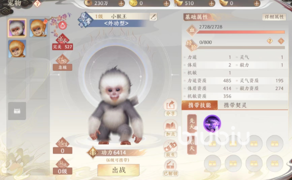 最后是宠物,因为玩家上战场的时候宠物是可以助战的,就像多了一个队友一样,所以建议大家选择神兽级别的宠物,这个级别的宠物属性是最高的,然后将宠物升级,后期通过培养来变异,变异之后的宠物有三个更强的技能,可以帮大家加速结束战斗。