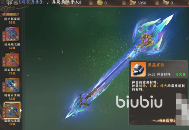 大家的第一把神器其实是通过等级来解锁的,如果大家在上面解锁成功的话,下一步就是需要升级神器,升级之后的神器会给大家带来战力提升,而神器升级就会用到这个叫做黑墨寒铁的道具,就算是不升级,其实神器也是可以进行铸造打磨的,或者是淬火大家也需要大量的黑墨寒铁。