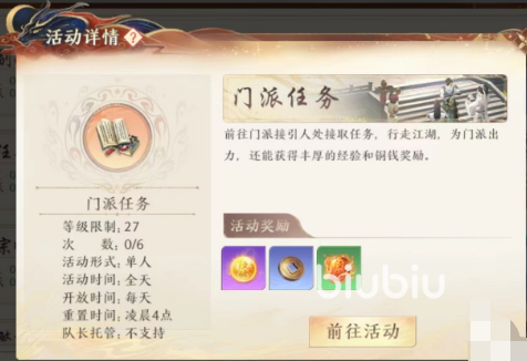 门派任务中大家可以将比较简单的全部接取,接取之后大家就可以点击任务追踪,会有自动寻路,只要完成一环就可以获取一部分的武学经验,最好是可以完成六环,这样每天的武学经验差不多都拿满了,拿满以后大家就可以去升级武学等级啦,武学等级提升还可以帮大家突破心境限制哦。