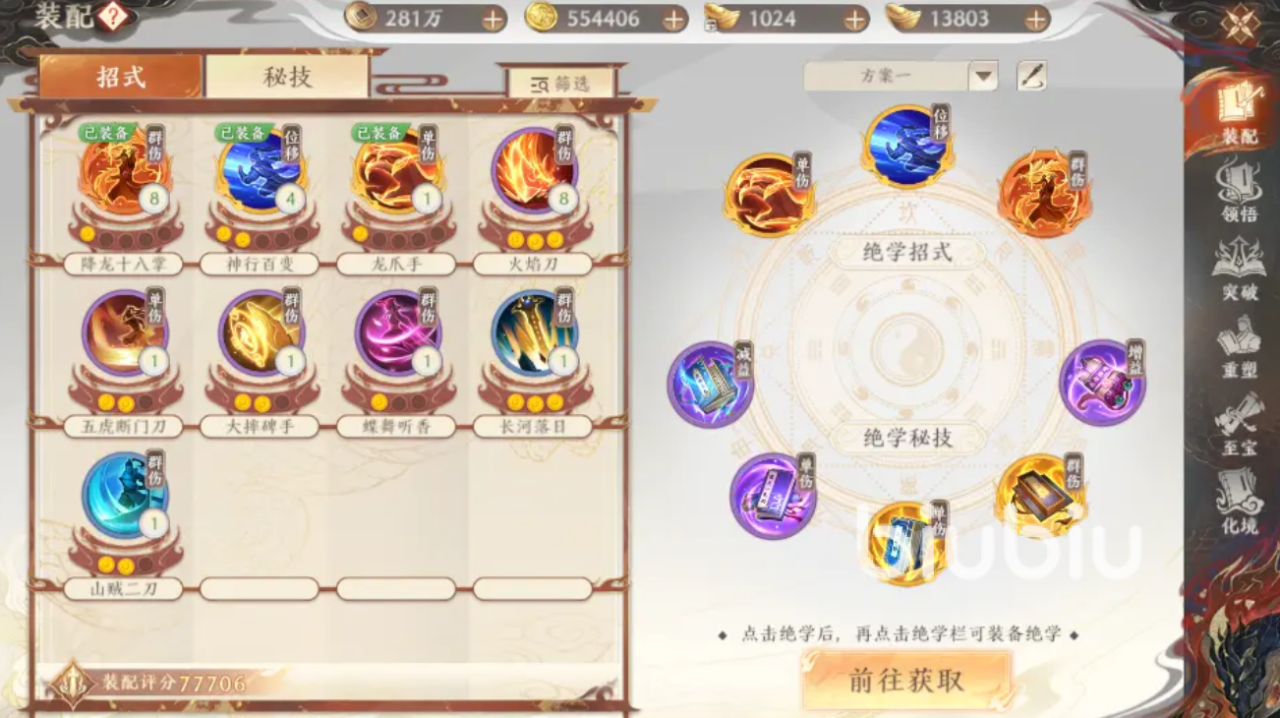 当然还有一种提升角色战斗力的方式,就是绝学。某种意义上,像其他游戏的特殊技能或者是EX大招。玩家们可以通过参悟游戏中相应的绝学,可以获得这些技能的能力。之后再将其装配可以直观的对我们角色战斗力,进行额外的提升。且这些技能方面有些非常有用,有些甚至可以直接改变玩家游戏的玩法,也就是说,如果玩家们想在游戏中得到更好的游戏体验的话,那么对于绝学的突破和提升以及装配是必不可少的。