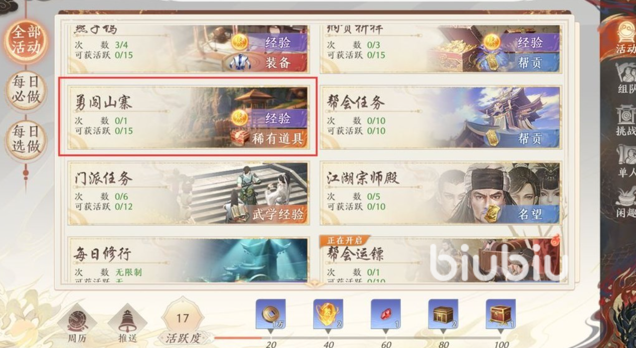 玩家每一天都可以参与一次勇闯山寨活动,这个活动只有第1次完成才能够获取活动奖励。想要参与这个活动,需要玩家带着自己的好朋友组队加入游戏,进入山寨剿灭山匪。而且还能够开启自动战斗,这就说明玩家不需要自己动手,只要实力足够,获取奖励就是时间的问题。
