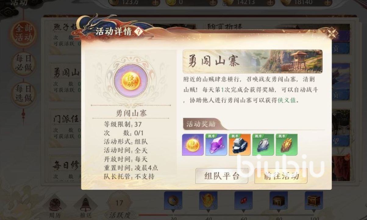 勇闯山寨活动只开放给37级以上的玩家,如果玩家想要参与这个活动,是一定要把自己的等级提升到37级的。而且游戏的战斗形式是以组队开放,玩家如果是单人角色是无法参与这个活动的,但是玩家觉得自己实力不错的情况下可以开启自动组队也能够加入游戏。