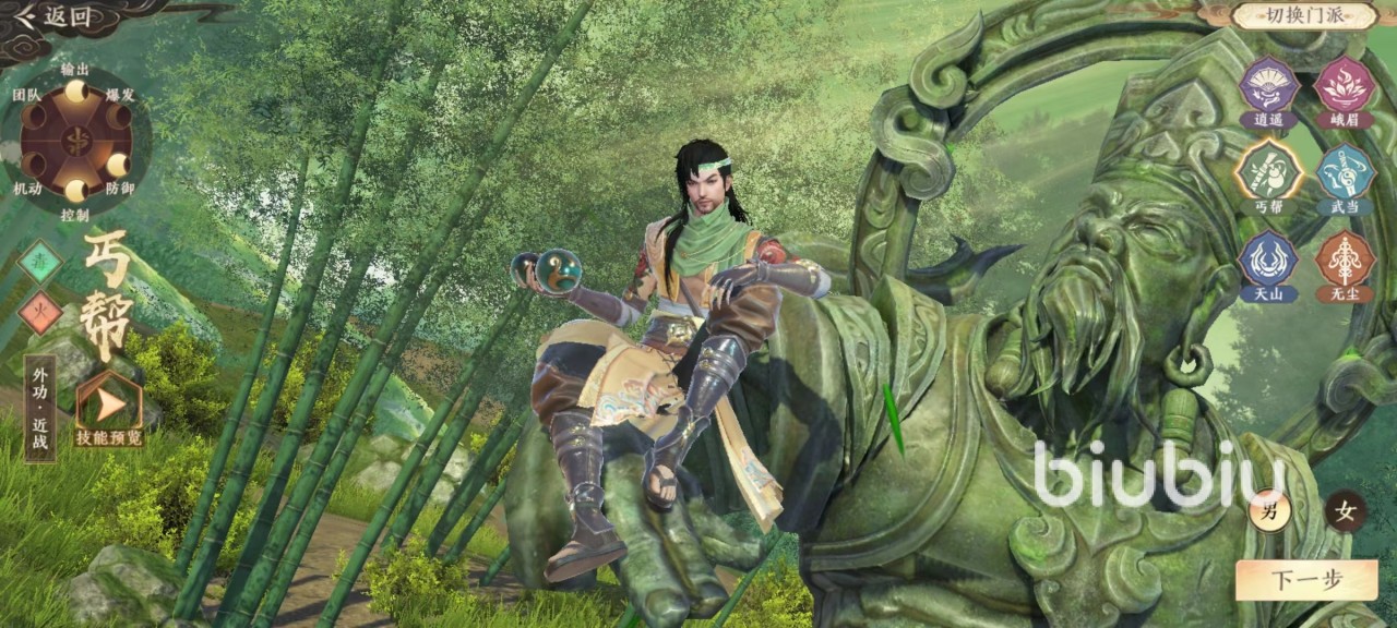 丐帮两个姿态切换属于游戏中很实用的效果,在输出状态下自身获得额外暴击几率,这样加上装备和宝石所附加的暴击,在输出中就能打出很强爆发。而切换到防御姿态时,自身受到输出伤害大幅减少,怒气回复速度上升,并且在造成伤害时还能附加嘲讽,这样就能接替无尘成为队伍中另外一名肉盾。无论选择哪种姿态,丐帮血量都有保障,这样作为近战生存率就会比天山这样脆皮强很多,很适合新手玩家选择。