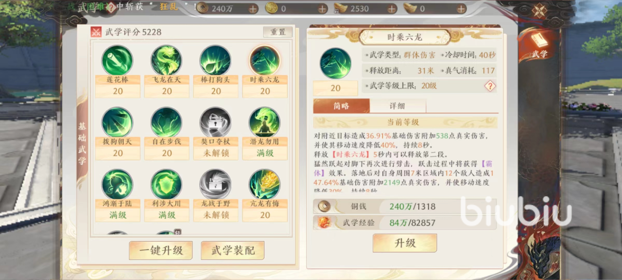 时乘六龙和拨狗朝天都是群攻伤害,对周围目标造成攻击的同时还能附加减速,并且这两个效果在释放之后,都使得自身进入到霸体状态。在此状态下不受任何控制和减速影响,无论是在副本战斗还是PK中都需要有效利用霸体,能抵消很多控制类技能,附加减速之后更容易追上敌人,接后面技能。这两个技能区别在于时乘六龙属于两段效果,第1次释放之后,后续还需要再次点击才能霸体,而拨狗朝天则是需要持续释放的范围内技能,在清理小怪的时候非常好用。