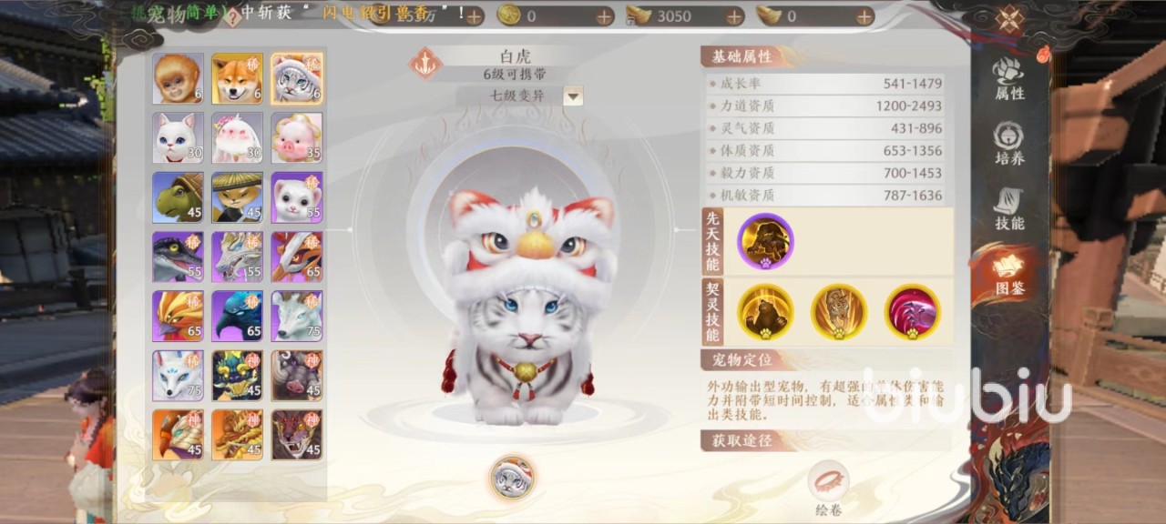 当然在不同战斗中宝宝需求也是不一样的,小编建议是每个职业都要培养肉盾、输出至少这两类,需要时候随时更换出战。如果手中资源比较充分,打造些专门用于辅助或是不同输出方式的宝宝自然更加妥当。如果前期不知道该选择哪个,参加绘卷活动用赠送的白虎就可以。