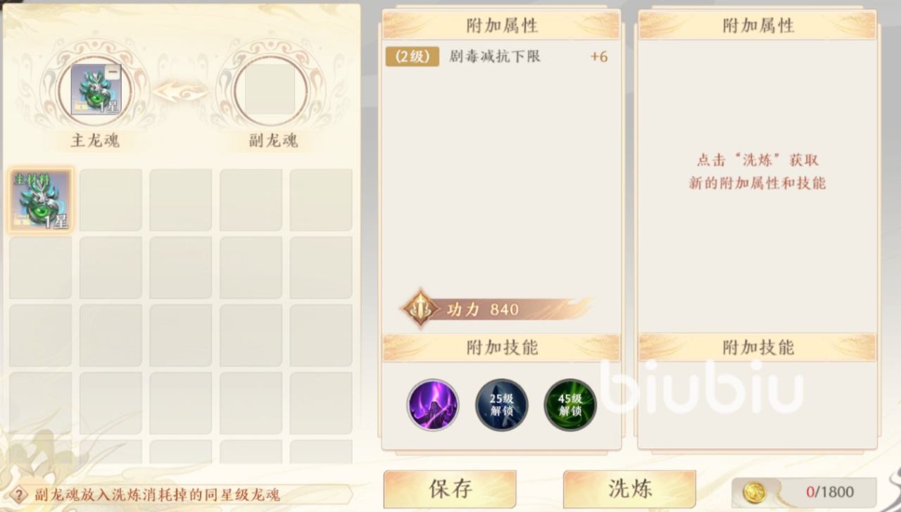 另外大家还可以对其进行洗练,通过这种方式你们能够改变它的一些属性还有能力,完成洗练的龙魂并不会重置当前的等级,里面技能和属性的级别也不会改变,而完成这项操作之后,还会返还所有前面凝练消耗掉的材料。
