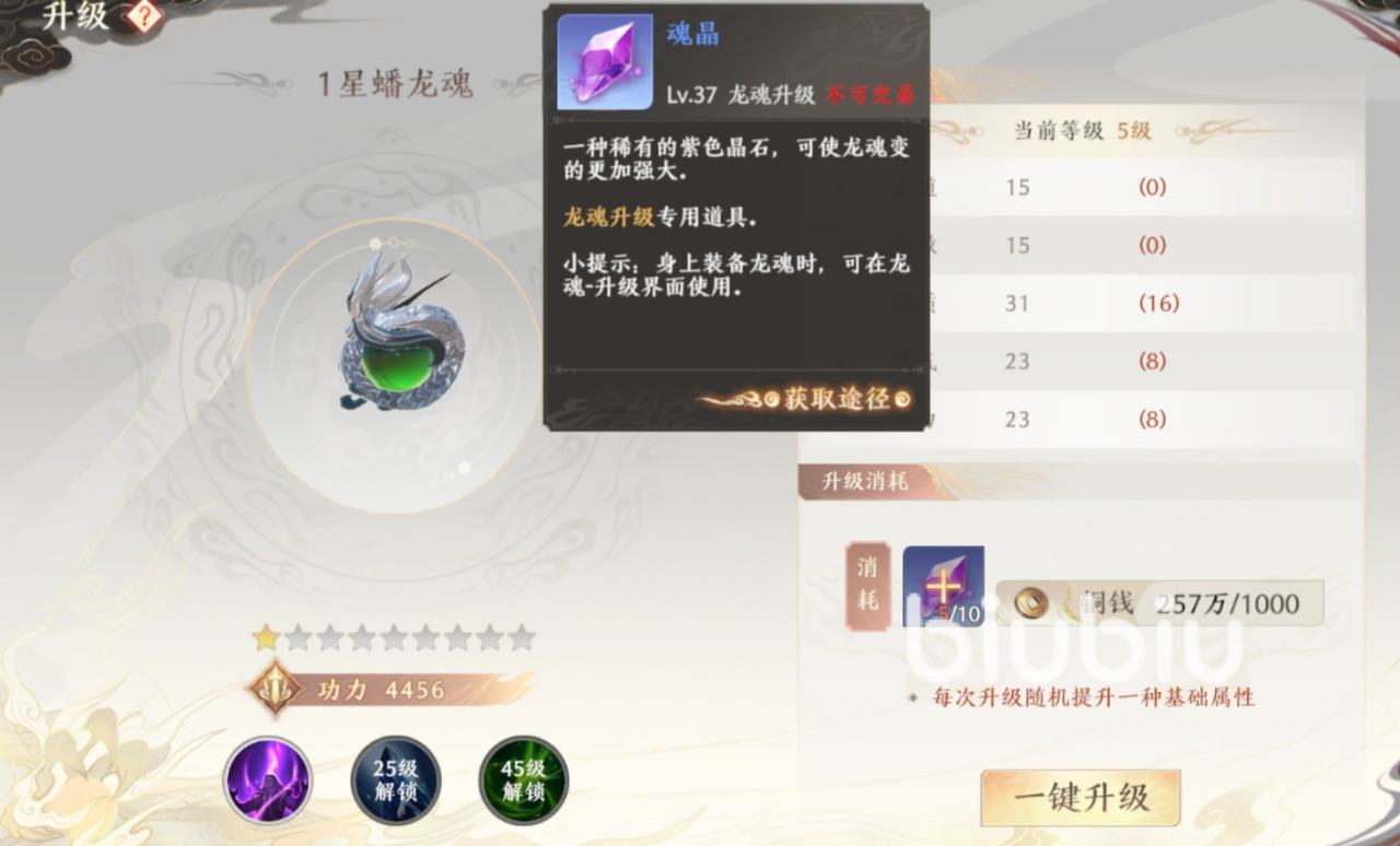 这个里的龙魂会有很多不同的等级,而玩家是能够通过消耗一定的材料进行等级的提升,只要它的等级够高,那么能够为大家提升的属性值也就会更高。而除了这项操作之外,你们还能够对其进行融合。