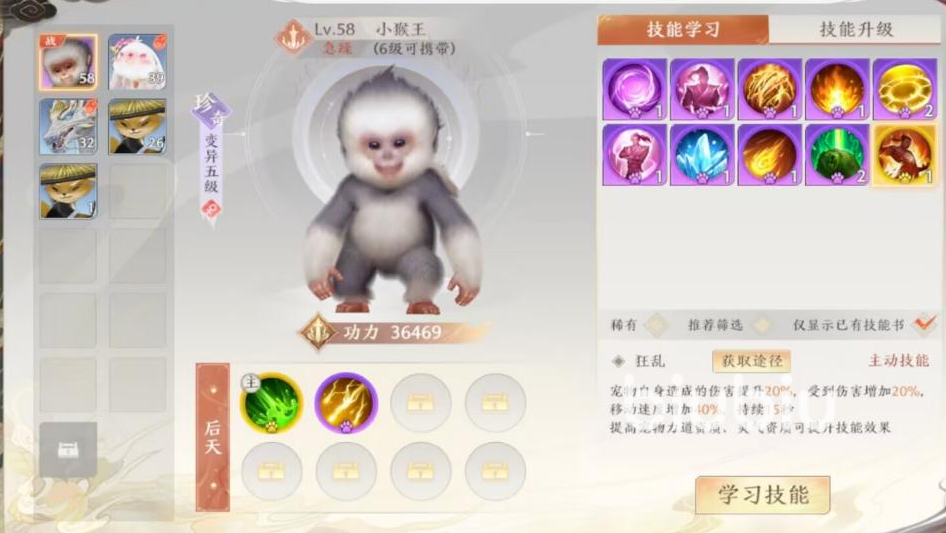 每一种宠物在获得之始都能够拥有一个先天技能,小伙伴们可以通过使用专门的道具激活另一个先天技能,如果是变异宠物的话,后天还能够学习8种技能,效果是非常厉害的。目前这款游戏中的宠物技能书大部分活动中都会有赠送,有时候通关pve副本也是能够赠送的,亦或者在游戏中的拍卖行、商城的随机刷新中出现,获取方式很多并不难,小伙伴们多多关注游戏的话,很容易就能够获得技能书。不过后天技能虽然比较容易获得,但是学习技能的时候是随机占取技能格子,也就是很可能新学习的技能将原本已经学习的技能给替换掉了,同时并不会返还,因此小伙伴们在技能的学习上需要注意,后天的8个技能中也能够选择一个主技能来在战斗中使用,所以玩家需要谨慎选择哦!