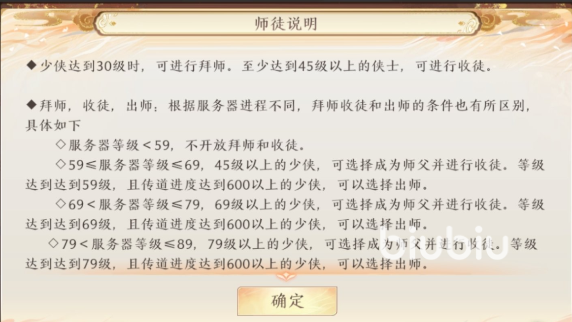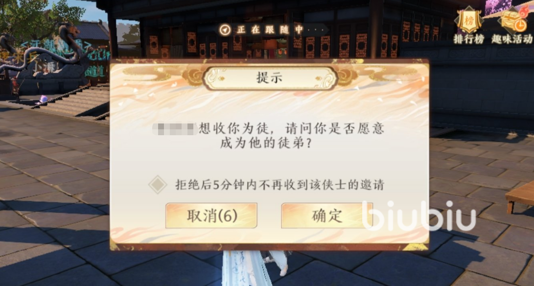然后对方的界面上就会出现对应的提示,在其确定之后你们便能成立这项关系了。而另一种就是在拜师系统里面进行寻找,游戏中会有特定的寻找界面,其中会有人在宣言中表示出自己是要收徒还是拜师。
