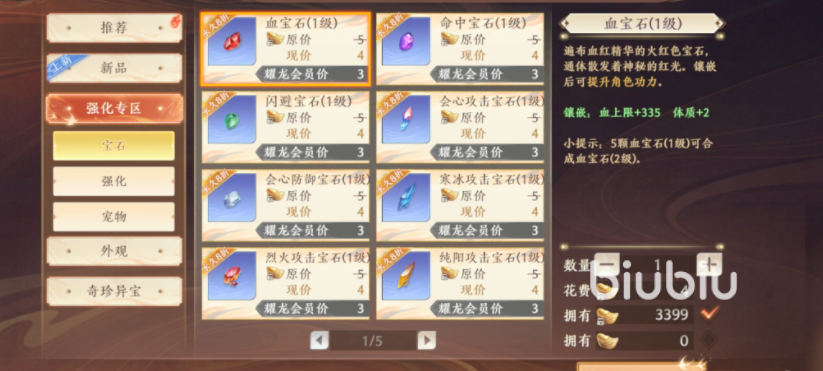 宝石在游戏当中玩家想要获取的话有四种不同的方法,第一种是用游戏当中绑定元宝在商城当中购买,商城强化专区有不少宝石供玩家自由选择,但是商城里的宝石等级最多只有四级,玩家想要更到等级属性的宝石就要自己合成了。