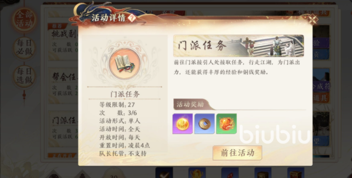 第二种方法是游戏当中的活动名叫问剑侠义坊,这个活动不仅能够让玩家获取大量的武侠经验,还能概率得到宝石,因此这个活动对于想要获得武学经验的玩家来说是一定要参加的。