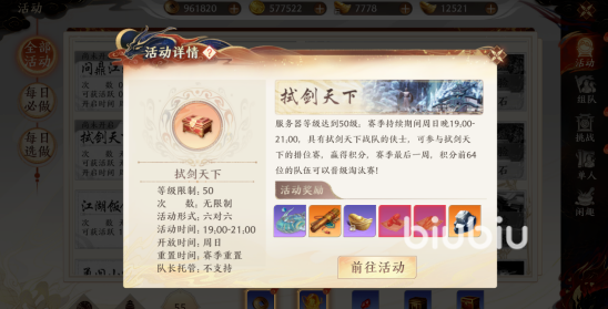 以上就是为大家带来的这款游戏中的试剑玩法,相信看完这篇文章的小伙伴们已经清楚的了解这个活动的玩法了,如果有对这个活动感兴趣的玩家,记得在没有到50级的时候,多喊几个小伙伴们一起游玩哦!