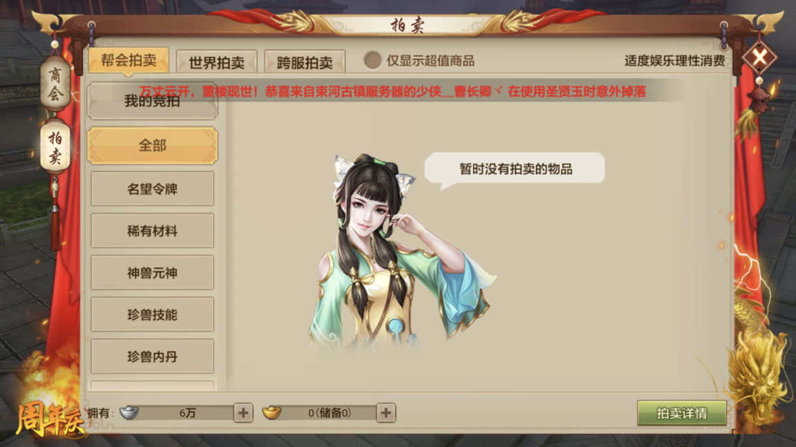 当活动结束后前几个率先击杀玩的帮会还会获得额外战利品。战利品会进行帮会拍卖所获得的元宝会进行分红。战利品包括宝石提升符-稀有珍兽技能书-珍兽内丹-名望玉令。