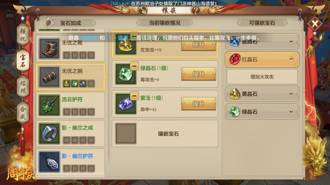 以上就是暴力影门派打石头的攻略,当然如果我们不喜欢打造火攻击的红晶石也可以将换成冰玄毒其他三种属性的宝石毕竟影门派使用属性攻击都可以输出很高伤害。
