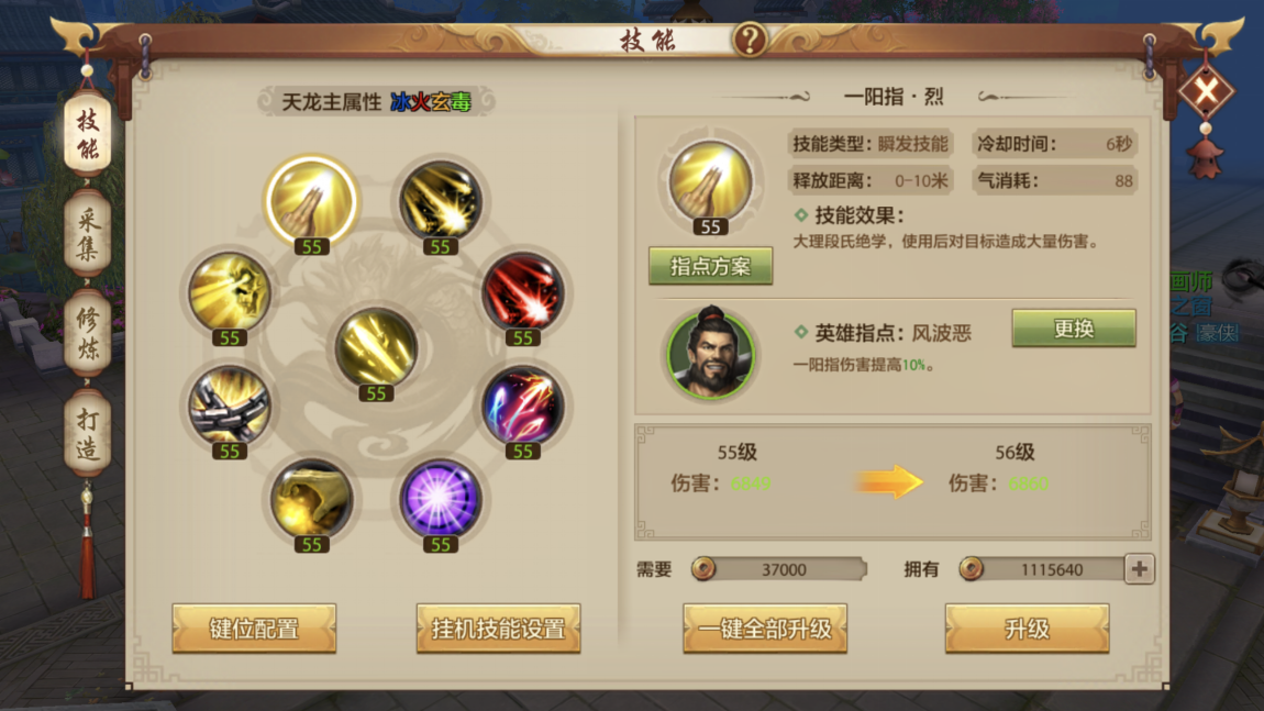 如果想要培养攻击型天龙则建议指点攻击型的招数,例如使用风波恶指点一阳指可以提升一阳指10%的伤害,使用木婉清指点八门锁金后增加封印期间40%伤害。