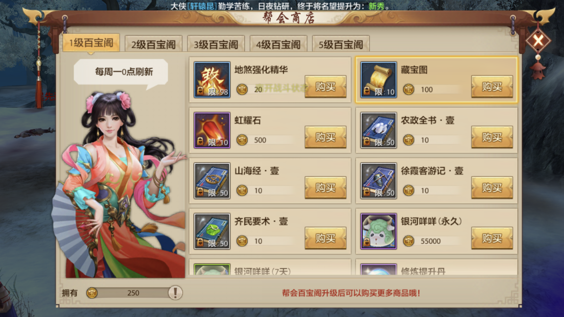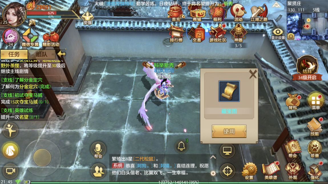 当我们使用了一张高级宝图后就可以获得一宝珠。在吴玠处可以开启藏宝阁,藏宝阁的物品十分稀有珍贵是我们提升战斗力不可多得的宝物。