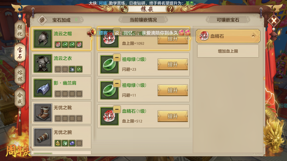 如果我们要打造高攻的影门派就需要在镶嵌宝石时尽量提升装备的攻击命中和会心。如果走稳定输出路线则建议装备各种晶石提升属性攻击。这里推荐装备绿晶石和绿冥石影门派跟毒属性更配呦。