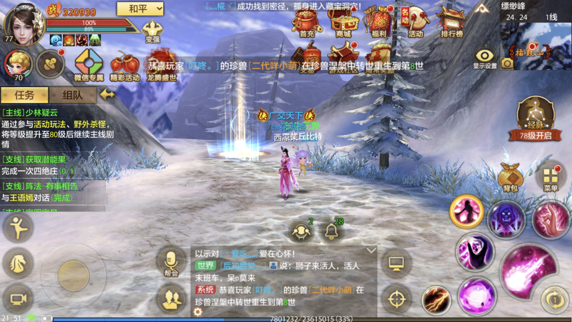 童姥的刷新地在雪原,在地图界面输入坐标17-22就可以自动寻路到童姥附近,这里童姥是多线互通的,我们可以可在雪原地图中的任意线路进行击杀,但并不意味这每条线路都有新的boss。