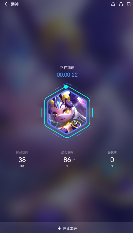 在正式加速的界面,玩家可以看到实际加速情况,如网络延迟和综合提升数据等等,帮助玩家更好地了解加速进程。
