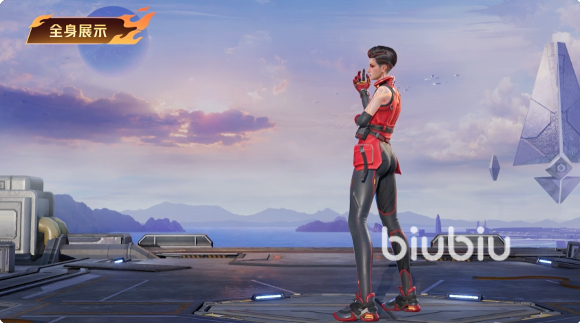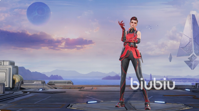 先来看一下这个角色的整体立绘情况,入目就是鲜艳的红色,红作为她额的主色调,预示着这个角色的性格是炽热又奔放的,而她作为一个女性角色,头发非常的短,十分的干练,头发还有挑染,也显示了她不羁的性格,与骨子里的一种狂傲。