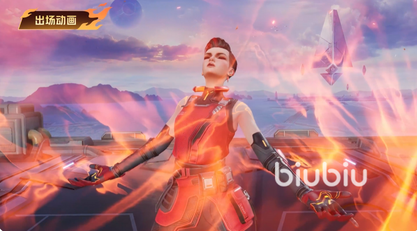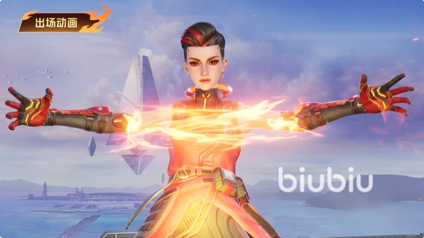 而从这个角色出场动画里也能看出一些端倪,出场时,会有一个比较长时间对火焰进行操控的动作,从自己的手中拉出一个燃烧着的火环,对空中释放之后,会在身百年形成一个环绕的烈焰墙。