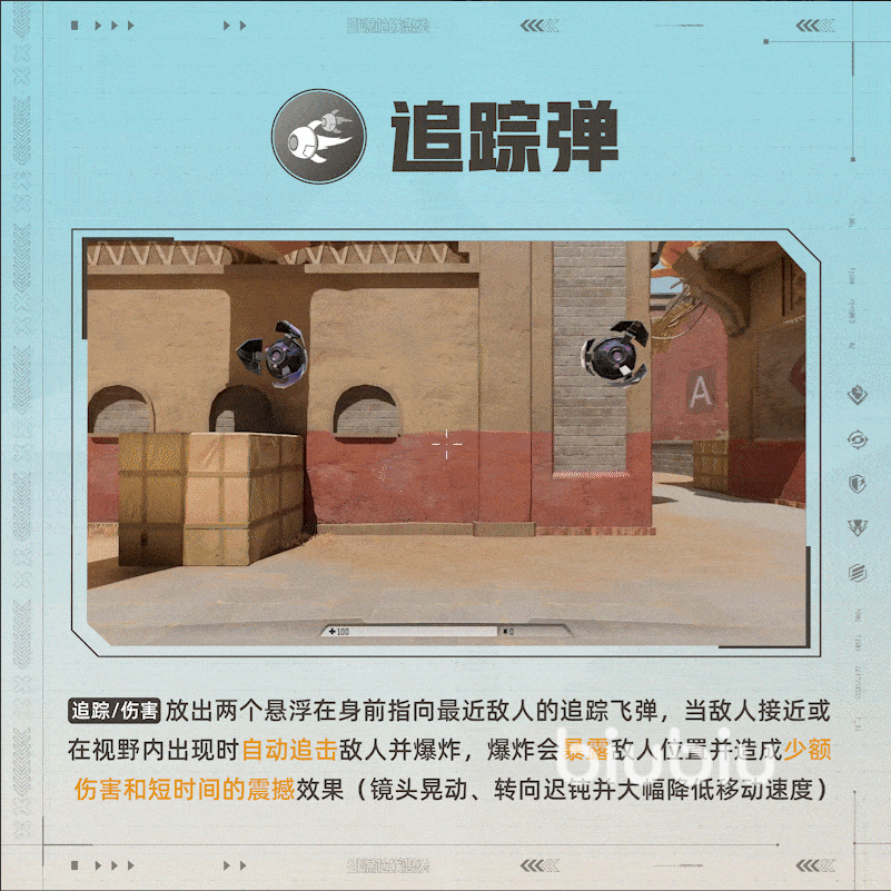 终极技能 - 追踪弹:释放后可以自动追击接近的敌人,获取敌人精准位置信息的同时,对其造成伤害和持续的震撼效果。追踪弹是哨兵的核心技能,能够在关键时刻改变战局。使用时,应选择敌方核心目标或正处在不利位置的敌军。追踪弹结合震撼弹使用,可以极大地增加敌人的逃生难度,为团队成员争取宝贵的击杀时间。