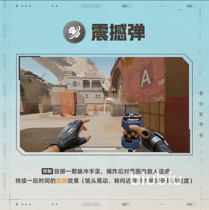 震撼弹:哨兵从口袋中取出震撼弹,对范围内的敌人施加震撼效果。震撼弹非常适合在敌群中制造混乱,或在侦察弹暴露敌方位置后迅速使用,以减缓敌人的反应速度。结合其他控制技能或大招,可以有效打断敌方的技能施放或攻势。