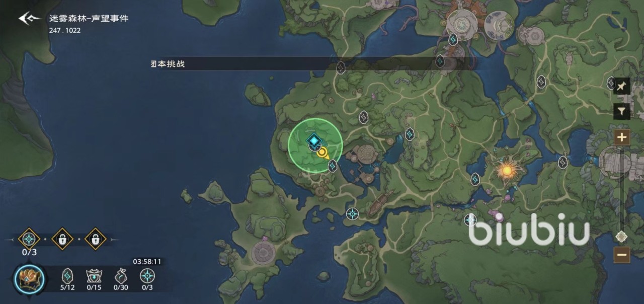 切换到世界地图可以看到其他地图里的声望时间任务,例如点开迷雾森林,其中主要有王牌飞行员,一个小魔术,古老法阵这三个。首次完成事件可以获得探索值,探索值也是每个地图独立积累起足够的探索值,能够获得一些额外奖励,再次完成就没有了探索值奖励,取而代之的是声望、银币等。这些事件虽然有趣,但是每天完成数量有限,所以要根据自己最需要的地图声望去完成。