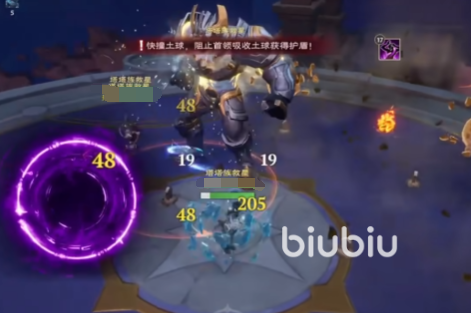 这二号boss一共有三个机制,第一个机制是对所有玩家造成一个超高的伤害,奶妈需要注意提前套减伤buff来吃这个伤害,吃下后需要及时给群奶回血,按这么做就可以破解boss的第一个机制。然后是第二个机制,这是一个撞球机制,该机制出现后boss会在场中放置元素球,自身会进入不同的元素状态,大家需要击破对应的元素球吃到元素,让自己的元素和boss保持一致,这样就能破解这个机制。