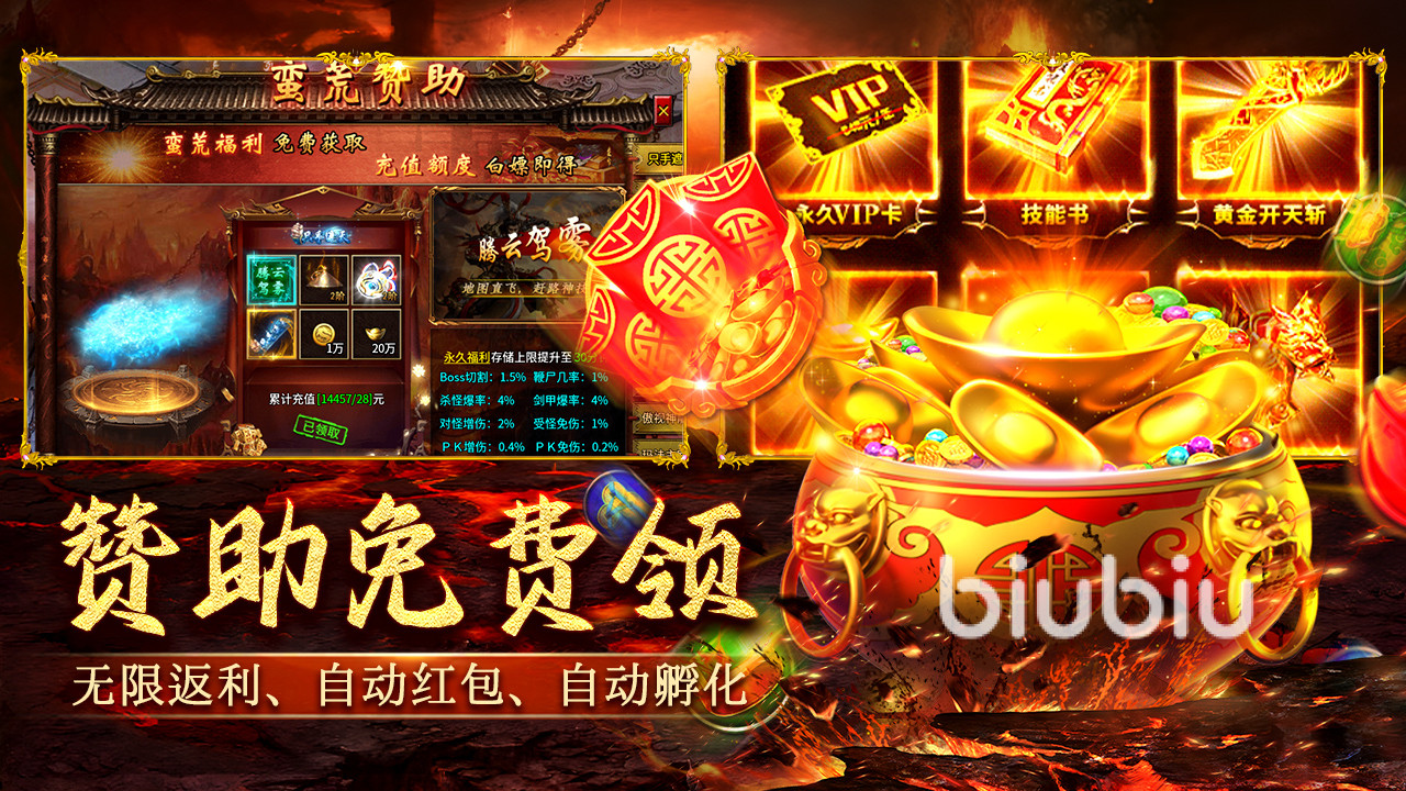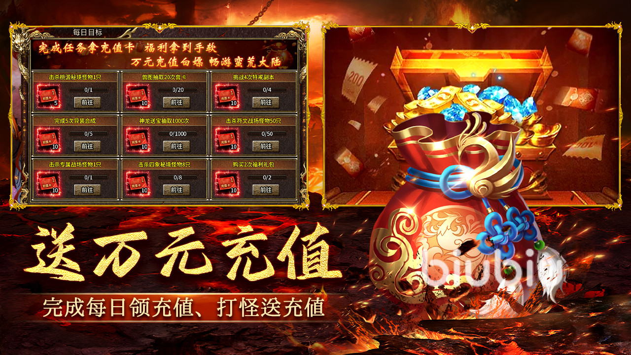 只需要完成指定的充值要求即可,就能拿到装备了,拿到了装备武装自己有了一定的战力以后,接下来就可以开始进行游戏的pvp玩法了,这pvp玩法也是最为核心的玩法,就和老传奇一样玩家之间可以随意进行pvp。