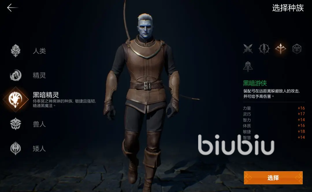 如果选择了人类弓箭,那么会拥有超长的射击距离。如果选择精灵或黑暗精灵,那将会拥有较高致命伤害以及移速的加成。