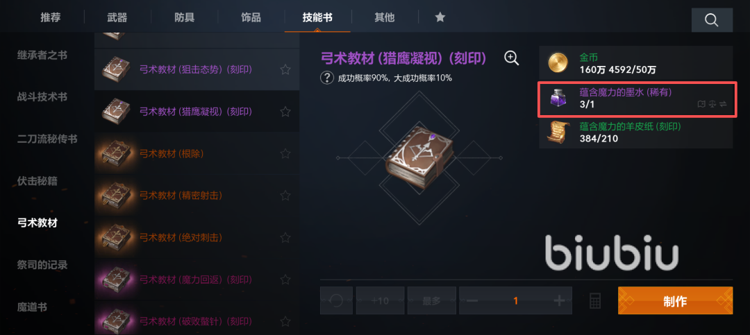 制作材料类道具时,结果是“成功”,获得单倍资源,“大成功”就获得双倍资源。在制作装备和技能书时,“英雄和传说”品质装备,以及“传说品质技能书”能直接制作成非印刻物品,更低品质的技能书和装备,或者其他道具,只有较小概率成为非印刻物品。