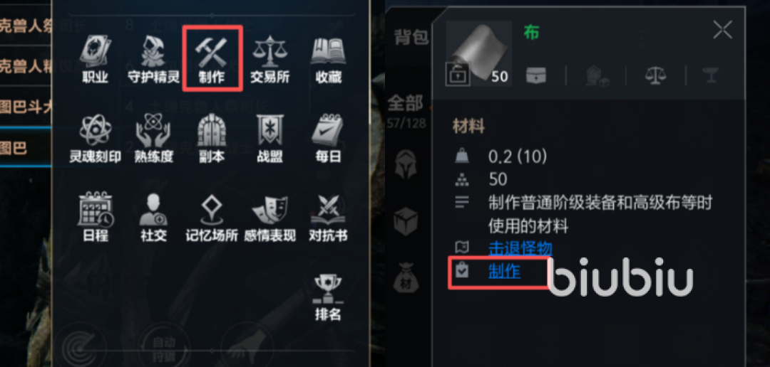 右上角的菜单当中,就能看到制作“系统”,长按材料点击制作,也能进入该界面。制作系统的核心作用是,首先是帮助大家制作出提升个人实力所需的装备,技能书,或者道具;其次则是将制作的物品出售,获得钻石。