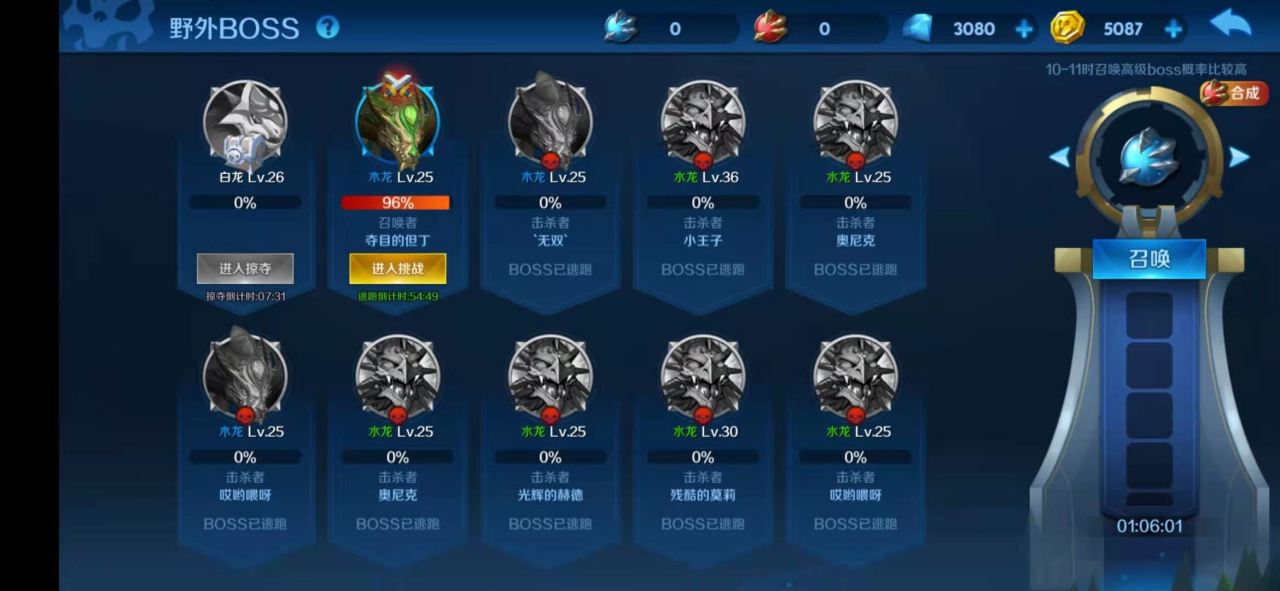 4.每个召唤的boss会在1个小时之后逃跑,玩家需要在此期间将其击杀,不然系统给的奖励就少之又少了,差不多几千金币。