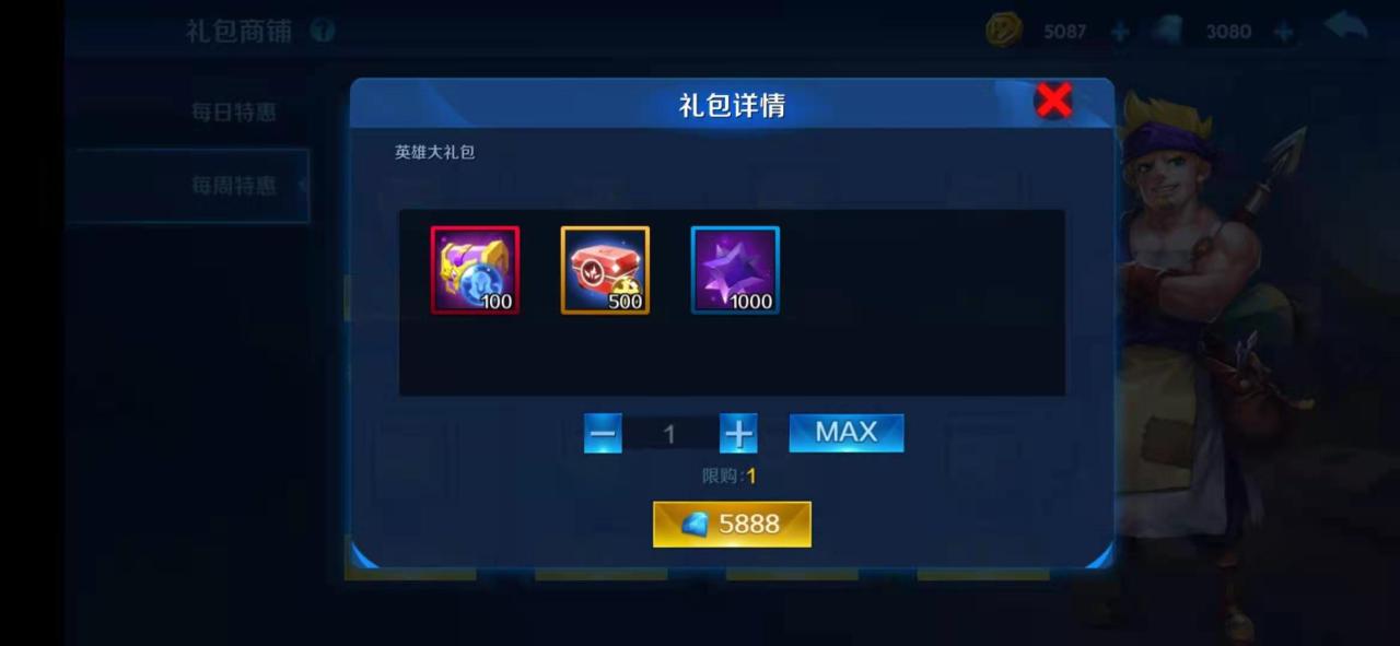 1.礼包店铺每周特惠,从玩家开始游戏的时候就要记住,前期一点钻石都不要消费,除非不可避免,一直存着等到可以购买5888钻石的英雄大礼包。